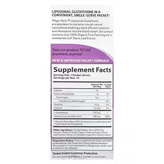يُغلّف الجلوتاثيون الليبوسومي Mega-Pack+® عناصره الغذائية في كرات ليبوسومية طبيعية بالكامل، مما يُسهّل انتقاله وامتصاصه في مجرى الدم. يحتوي منتجنا على نكهات فواكه عضوية 100% فقط، وهو مُحلّى بمستخلص أوراق ستيفيا.