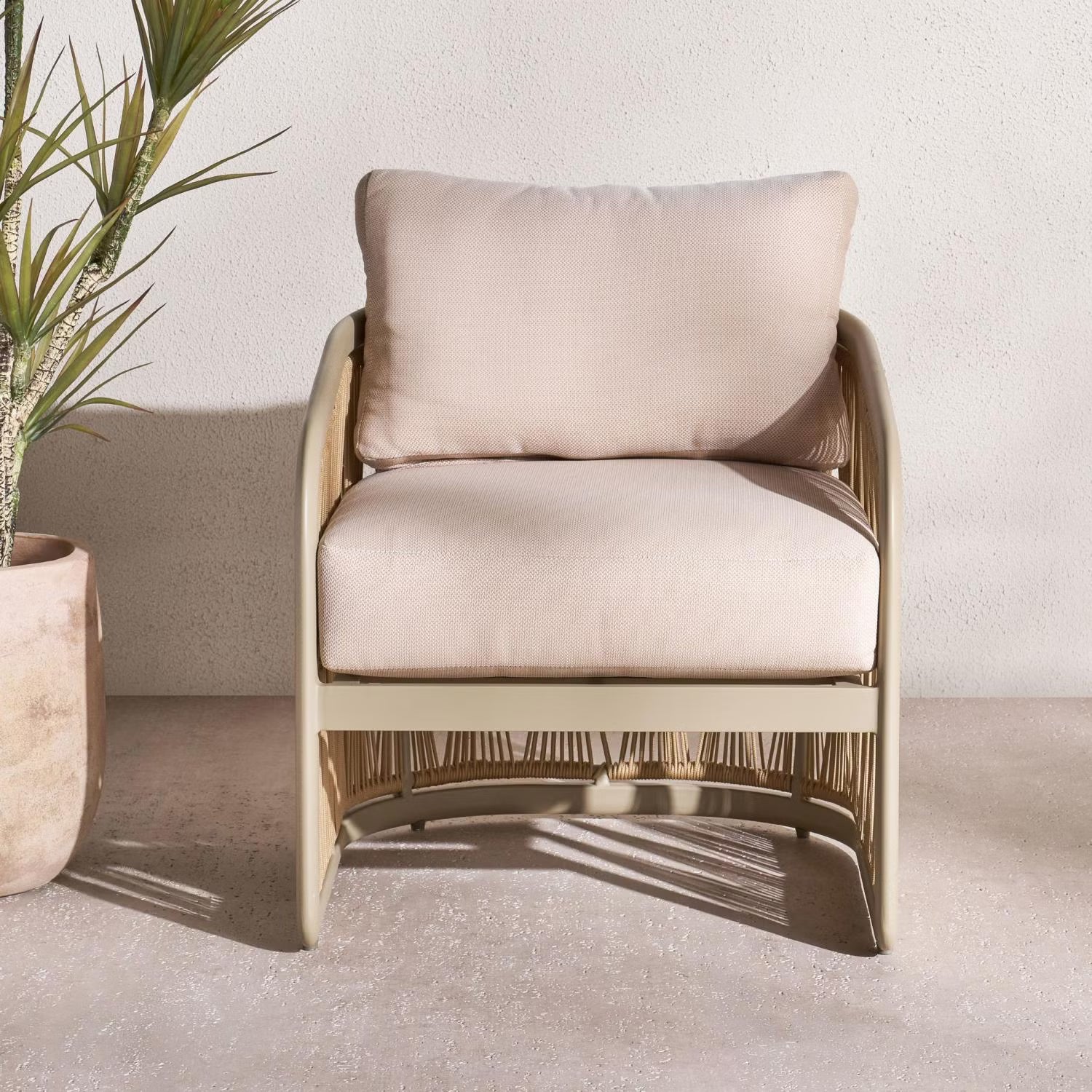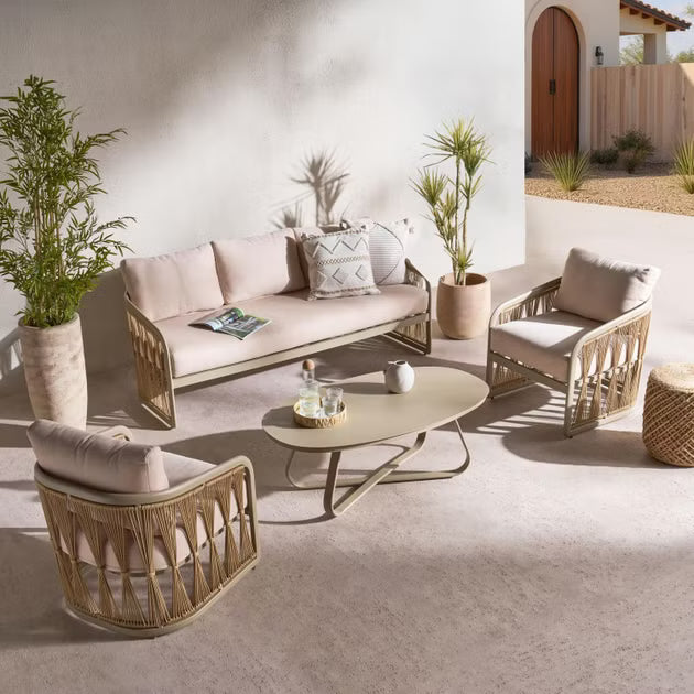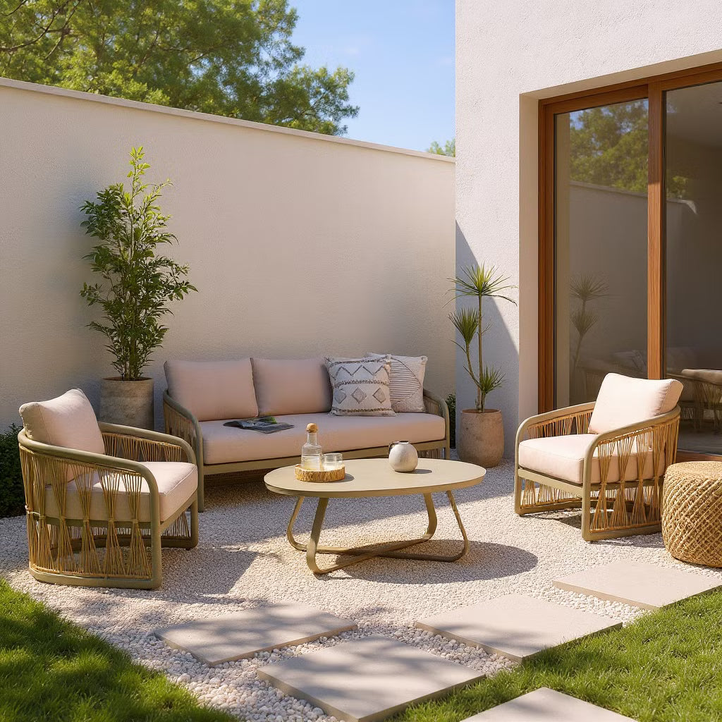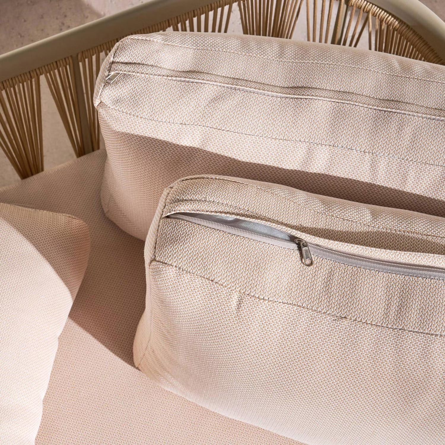 نمط النسيج، وسائد من الريش، سهلة العناية، مطلية بالمسحوق، قوية ومتينة، مصنوعة من الألومنيوم الممتاز، مقاومة للماء وسهلة التنظيف، وسادة جلوس مريحة.