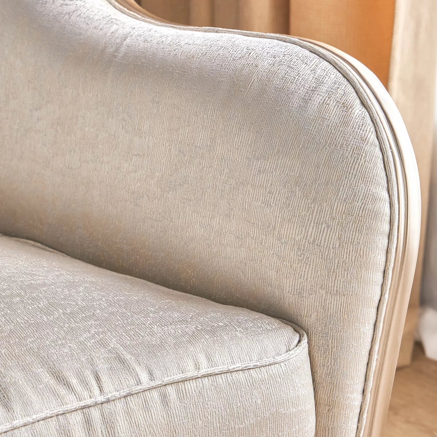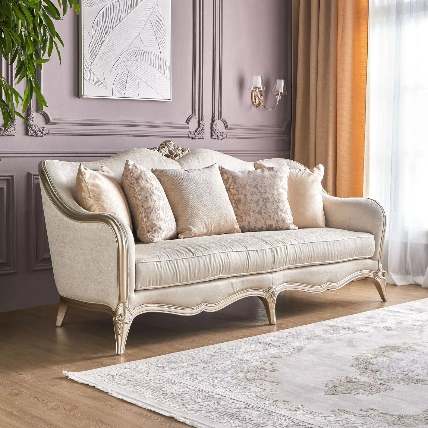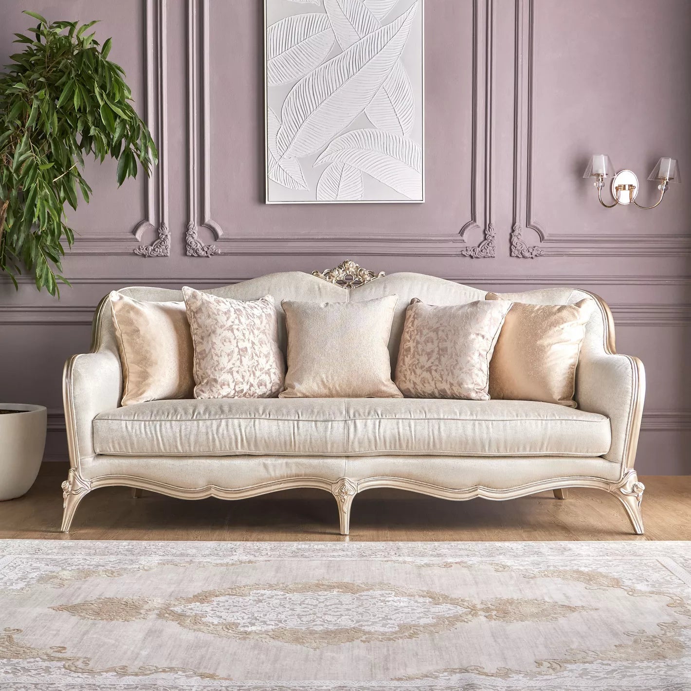 استمتع بأقصى درجات الراحة والأناقة مع هذه الأريكة القماشية الأنيقة بثلاثة مقاعد، بإطار من الخشب المتين لضمان المتانة والثبات. تصميم الظهر المرتفع يوفر راحة إضافية، بينما تُضفي النقوش الخشبية الدقيقة لمسةً من الأناقة على مظهرها. تُضفي الوسائد المنقوشة لمسةً من السحر، وتوفر دعمًا إضافيًا للظهر لتجربة استرخاء مثالية. مثالية للتجمعات العائلية أو أوقات الظهيرة الممتعة، حيث تنسجم هذه الأريكة بسلاسة مع ديكور منزلك.