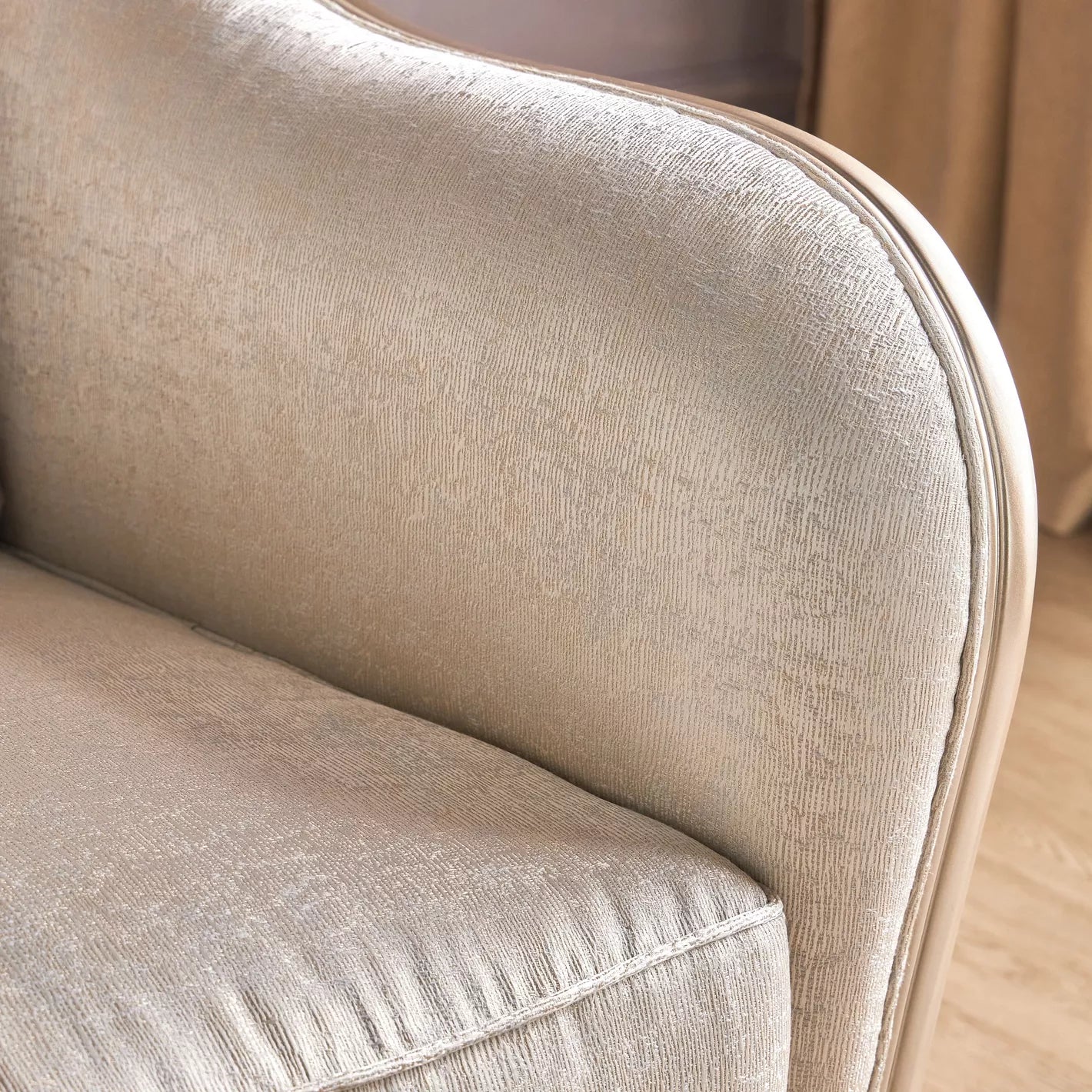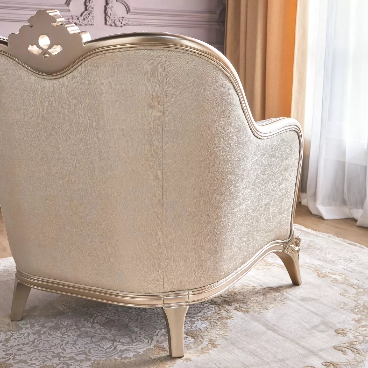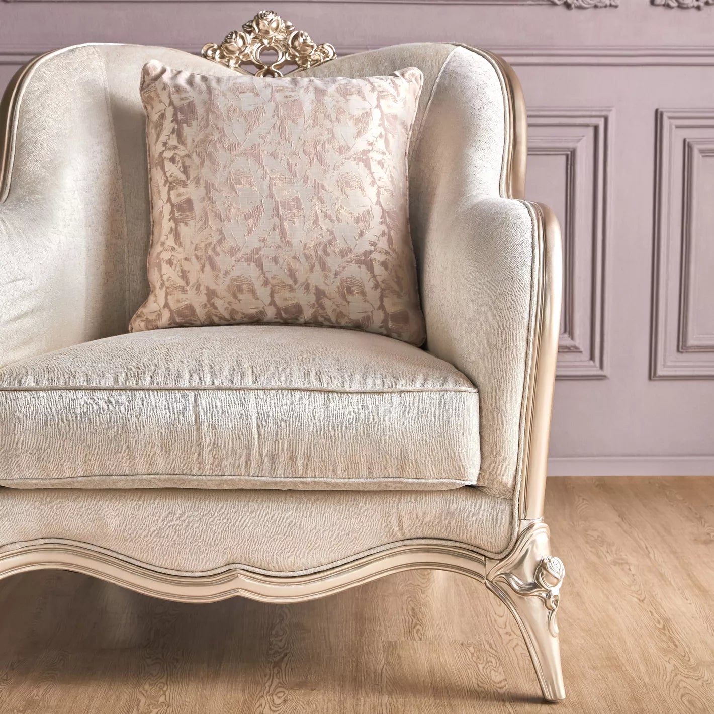 ارتقِ بمساحة معيشتك مع أريكة القماش الكلاسيكية. صُممت بإطار من الخشب المتين، ما يضمن لك المتانة والثبات لسنوات قادمة. استمتع براحة إضافية بفضل ظهرها المرتفع ووسائدها المريحة التي توفر دعمًا مثاليًا للظهر. يتميز الكرسي بذراعين بنقوش خشبية دقيقة، مما يضفي لمسة من الأناقة والرقي على أي غرفة. تُكمل وسادة منقوشة تصميمه، مما يخلق مزيجًا متناغمًا من الأناقة والراحة.