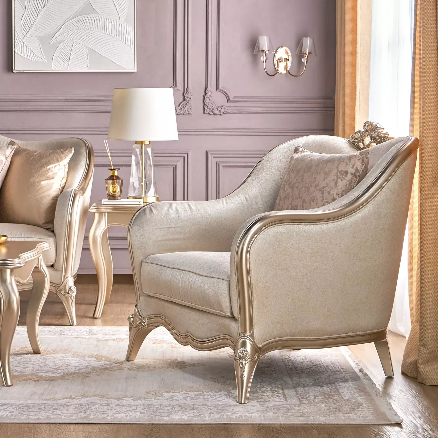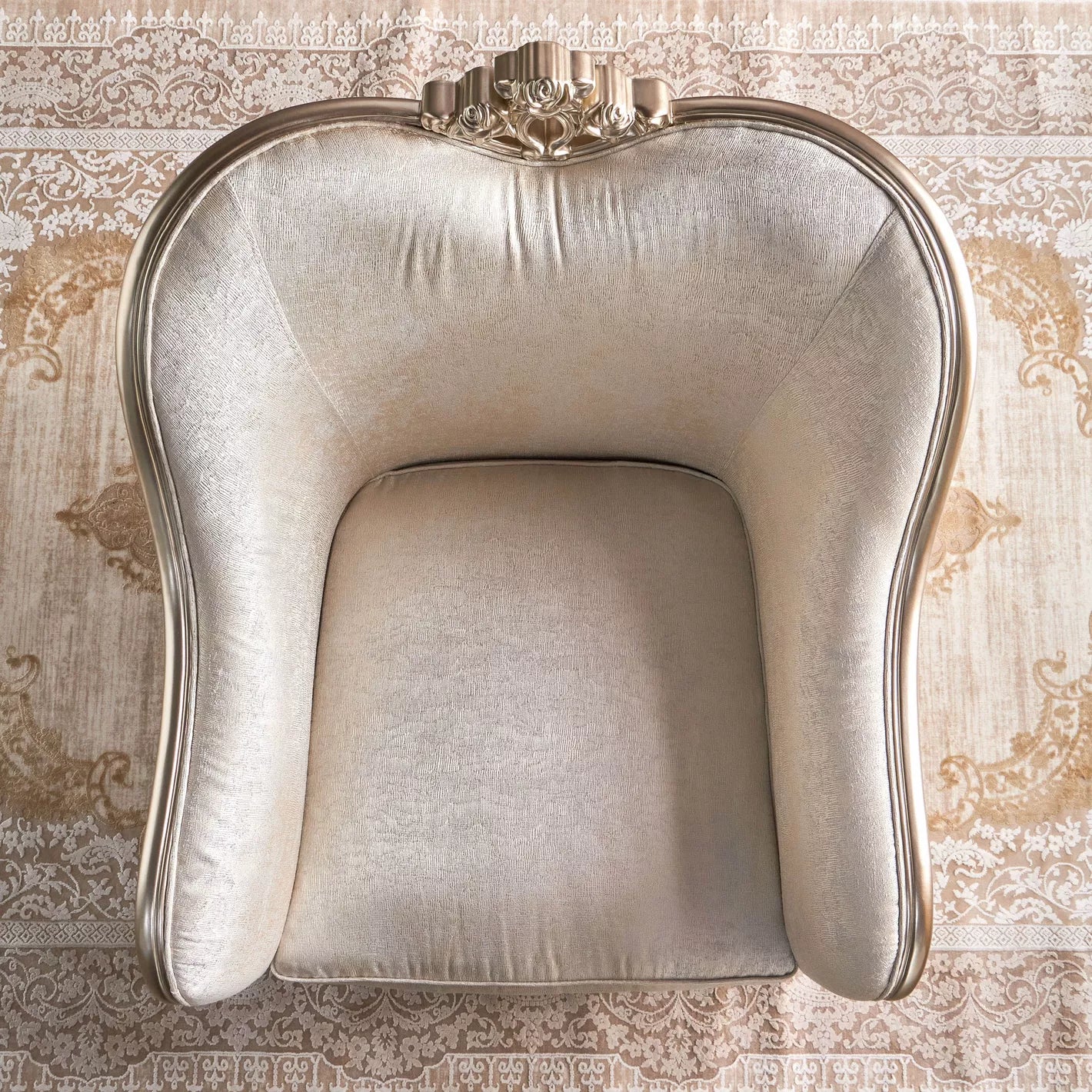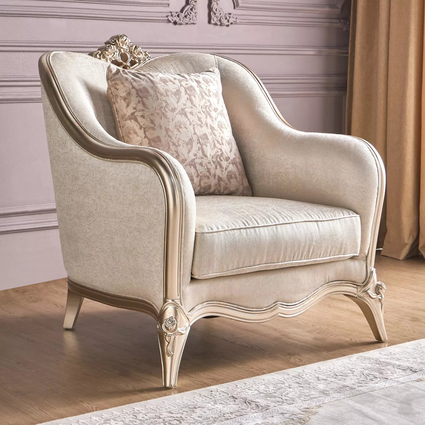 ارتقِ بمساحة معيشتك مع أريكة القماش الكلاسيكية. صُممت بإطار من الخشب المتين، ما يضمن لك المتانة والثبات لسنوات قادمة. استمتع براحة إضافية بفضل ظهرها المرتفع ووسائدها المريحة التي توفر دعمًا مثاليًا للظهر. يتميز الكرسي بذراعين بنقوش خشبية دقيقة، مما يضفي لمسة من الأناقة والرقي على أي غرفة. تُكمل وسادة منقوشة تصميمه، مما يخلق مزيجًا متناغمًا من الأناقة والراحة.