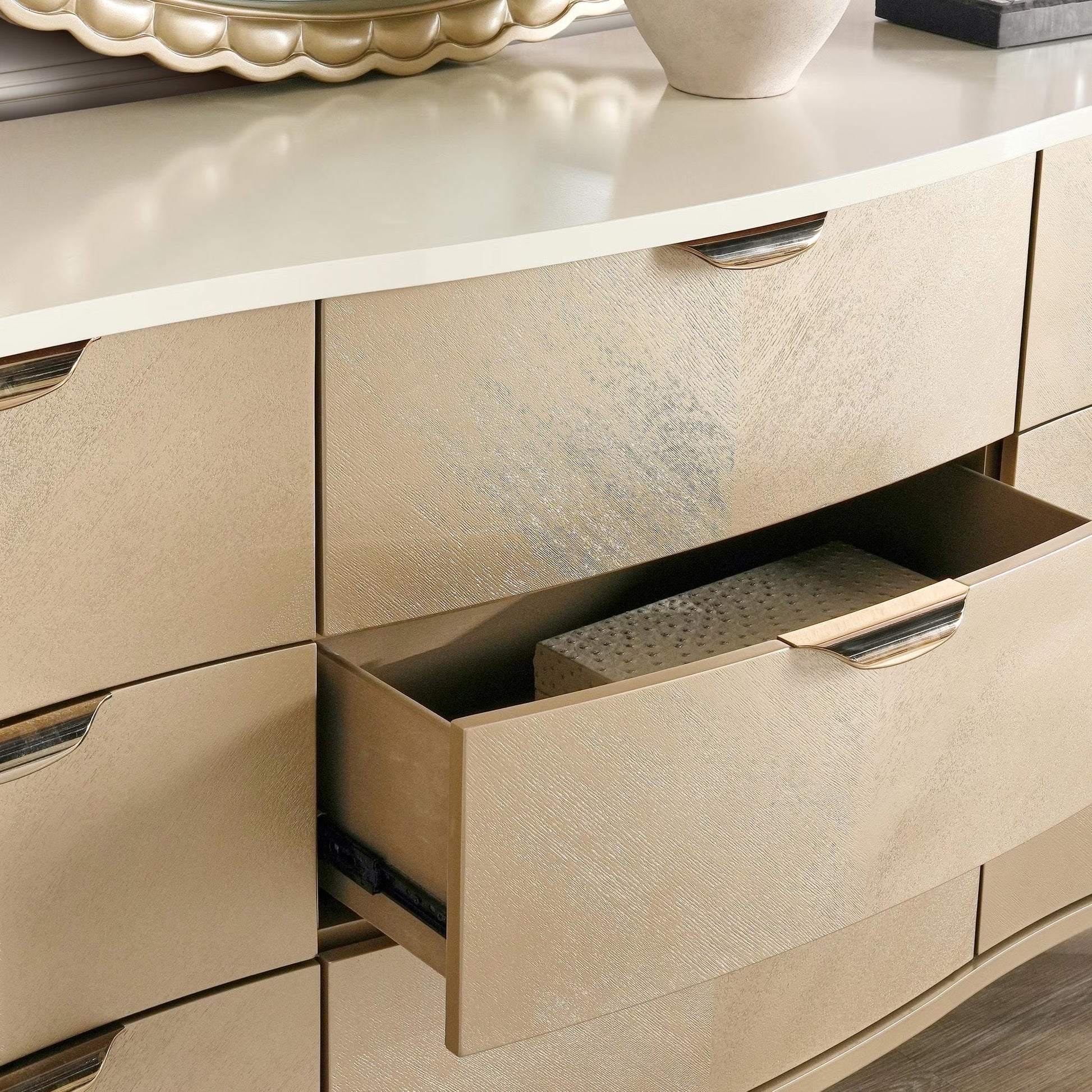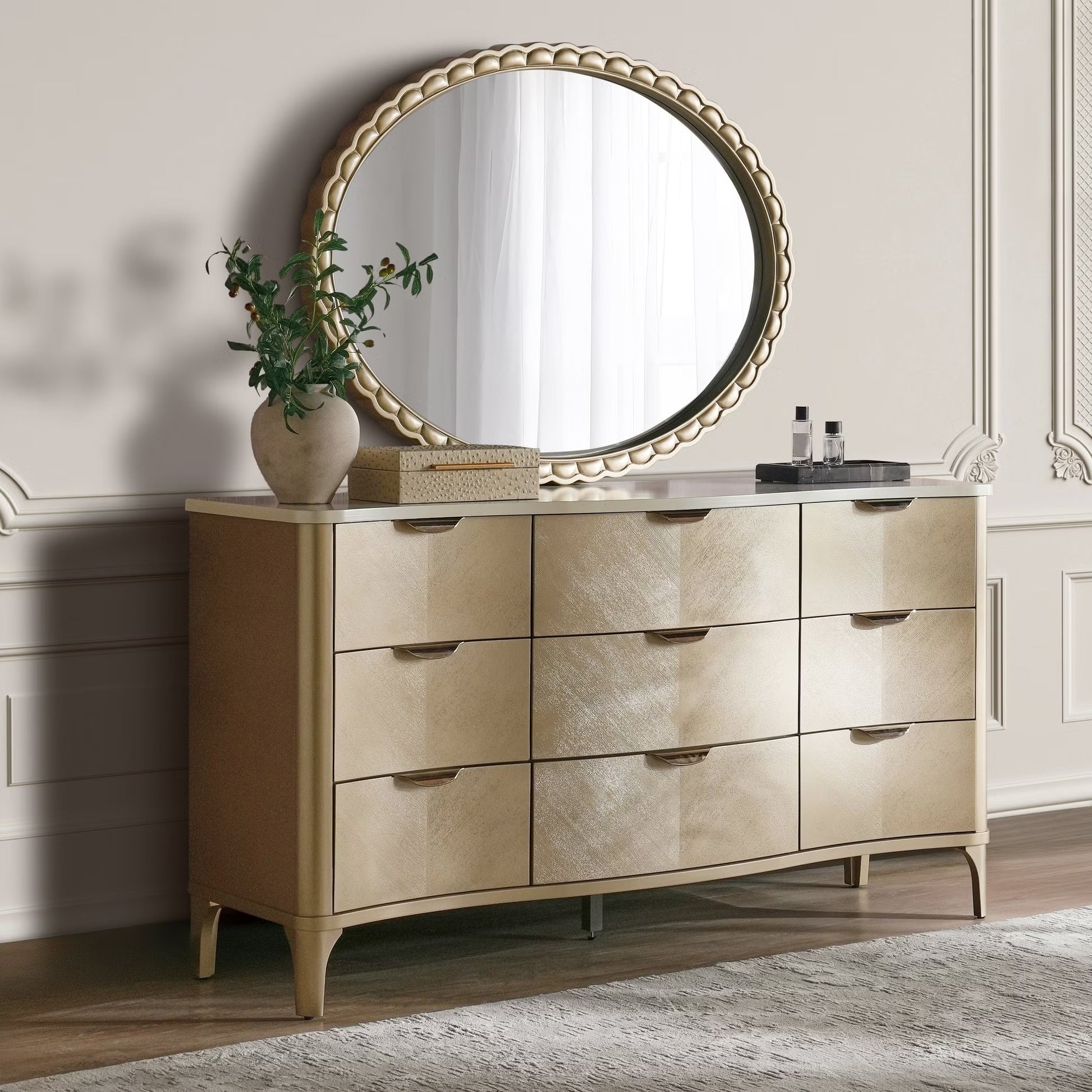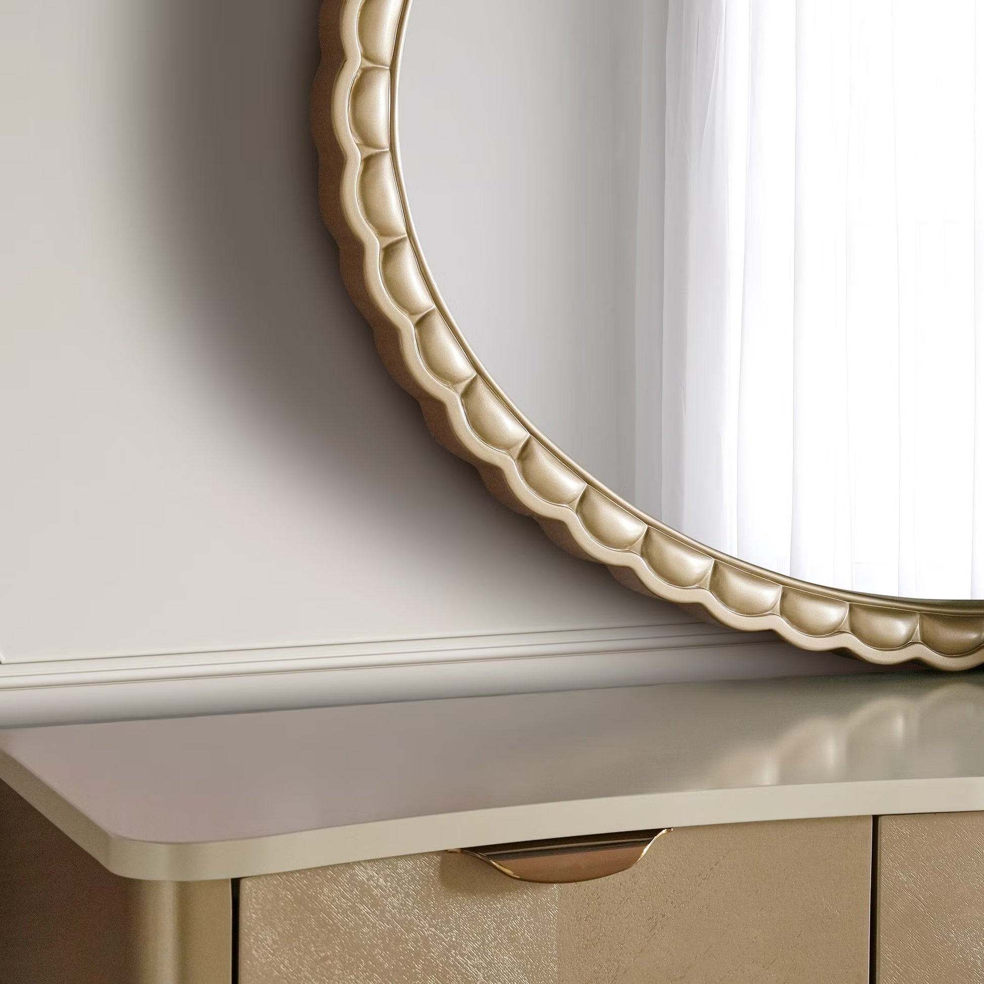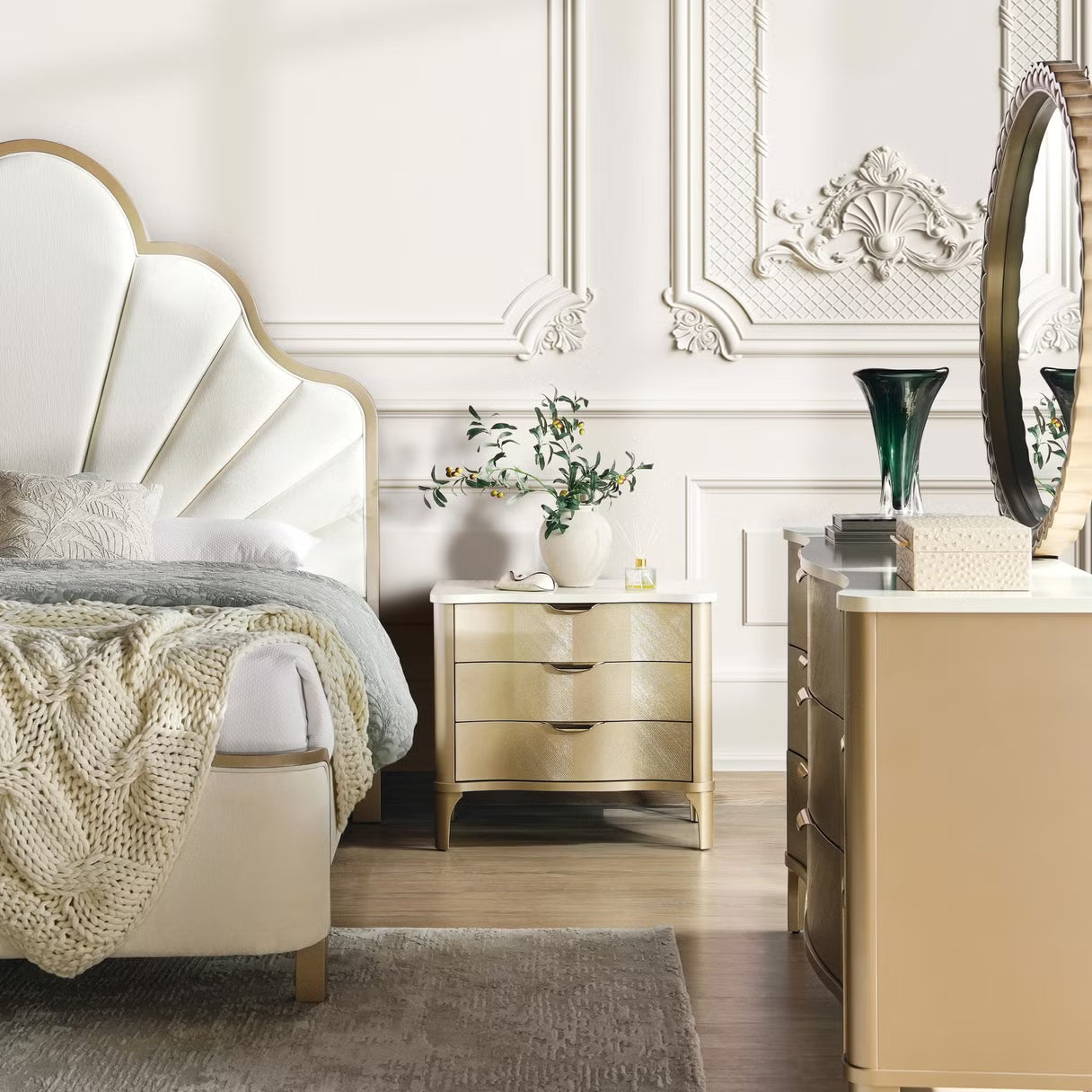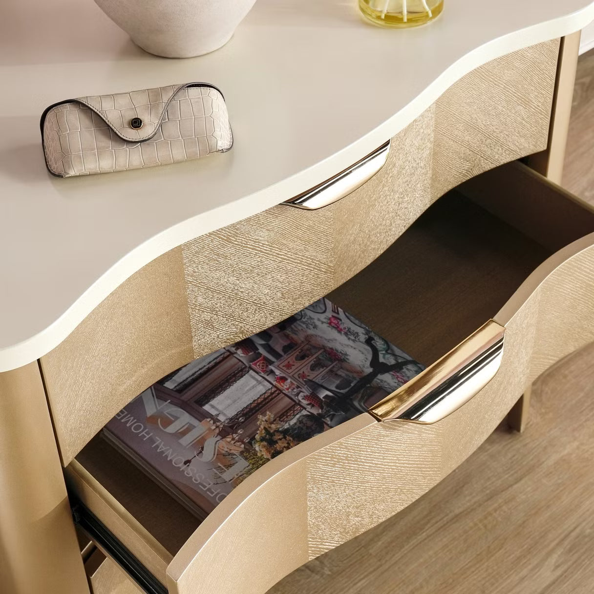 طقم غرفة نوم ماليبو، المكون من 5 قطع، بلمسة نهائية بلون الشمبانيا الناعم، يُجسّد توازنًا مثاليًا بين الفخامة والتصميم العصري. مع سريرها الملكي الأنيق (180×200 سم)، تتميز هذه المجموعة بلوح رأس سرير مبطن بشكل رائع، مُرتفع على أرجل من الخشب الصلب، مما يوفر مساحة واسعة على الأرضية، مع تعزيز تدفق الهواء وإضاءة مثالية. صُنعت كل قطعة من مزيج من القماش الفاخر والخشب المتين، وصممت لتوفر المتانة والراحة الفائقة. تُضفي الخزانة الفسيحة والمرآة المتناسقة معها أناقة عملية، بينما توفر طاولتا السرير الجانبيتان مساحة تخزين عملية بخطوط أنيقة وسحر بسيط. من درجات لون الشمبانيا اللطيفة إلى تصميم النوم الهادئ، صُممت كل تفصيلة في هذه المجموعة بعناية فائقة لتُحسّن تجربة نومك. سواء كنت تسترخي أو تستقبل يومًا جديدًا، فإن مجموعة ماليبو تُضفي لمسة هادئة وراقية، تبدو خالدة بكل سهولة.