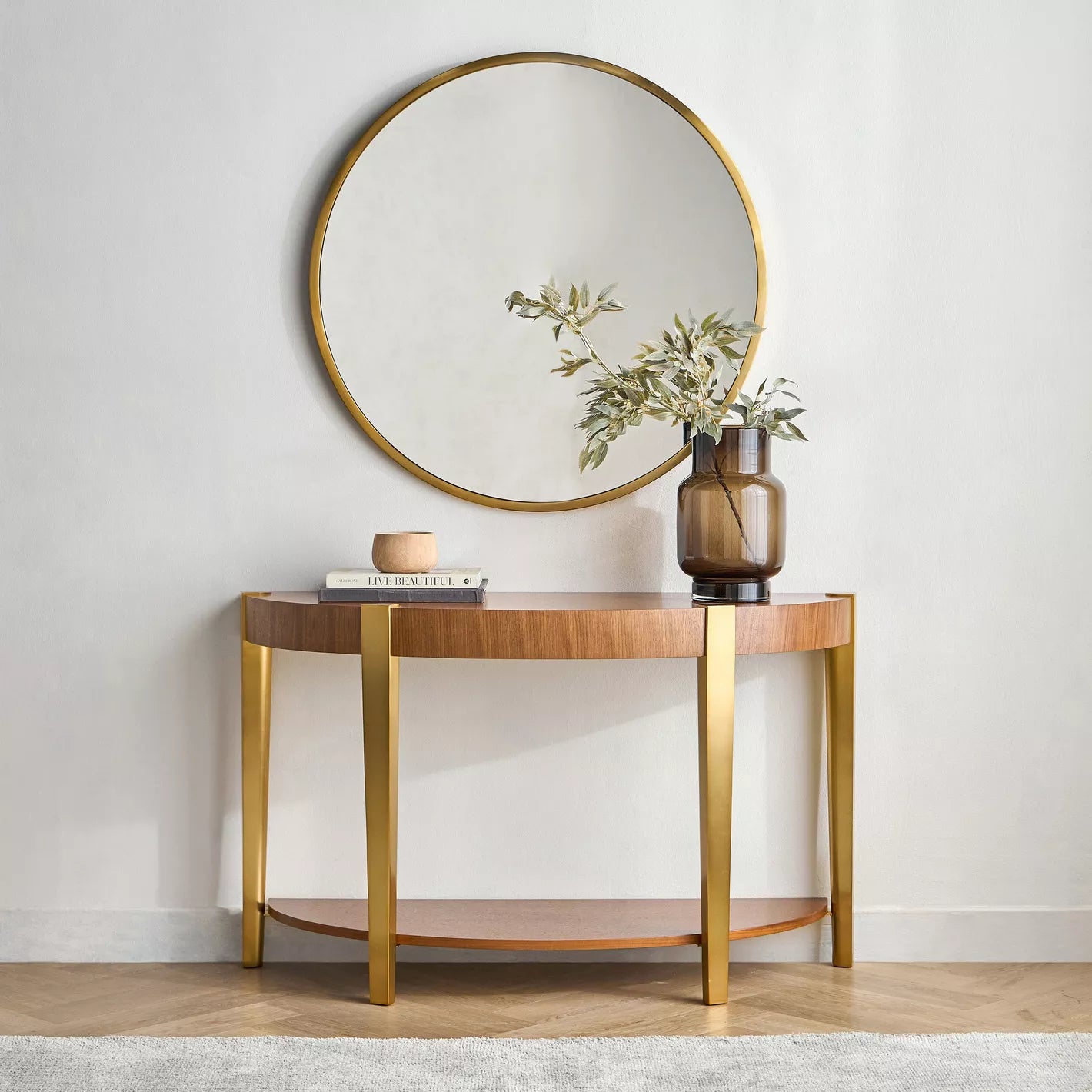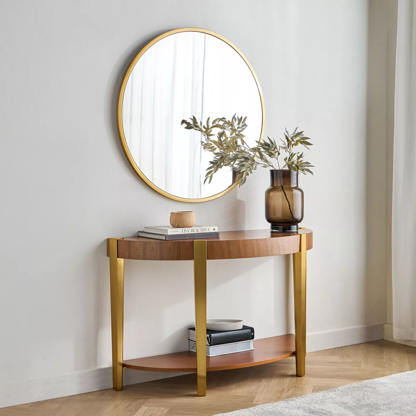 ارتقِ بمساحة معيشتك مع طاولة الكونسول هذه المزودة بمرآة. تمزج هذه القطعة الأنيقة بين الأسلوب العصري والعملية بسلاسة، لتقدم الأناقة والعملية. مثالية لغرفة معيشتك، فهي تُشكّل نقطة محورية أنيقة، وتوفر مساحة واسعة للديكور أو الضروريات. عزّز جمال منزلك واستمتع بالتوازن المثالي بين الشكل والوظيفة مع طاولة الكونسول العصرية هذه.