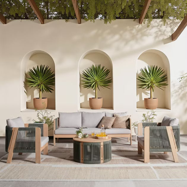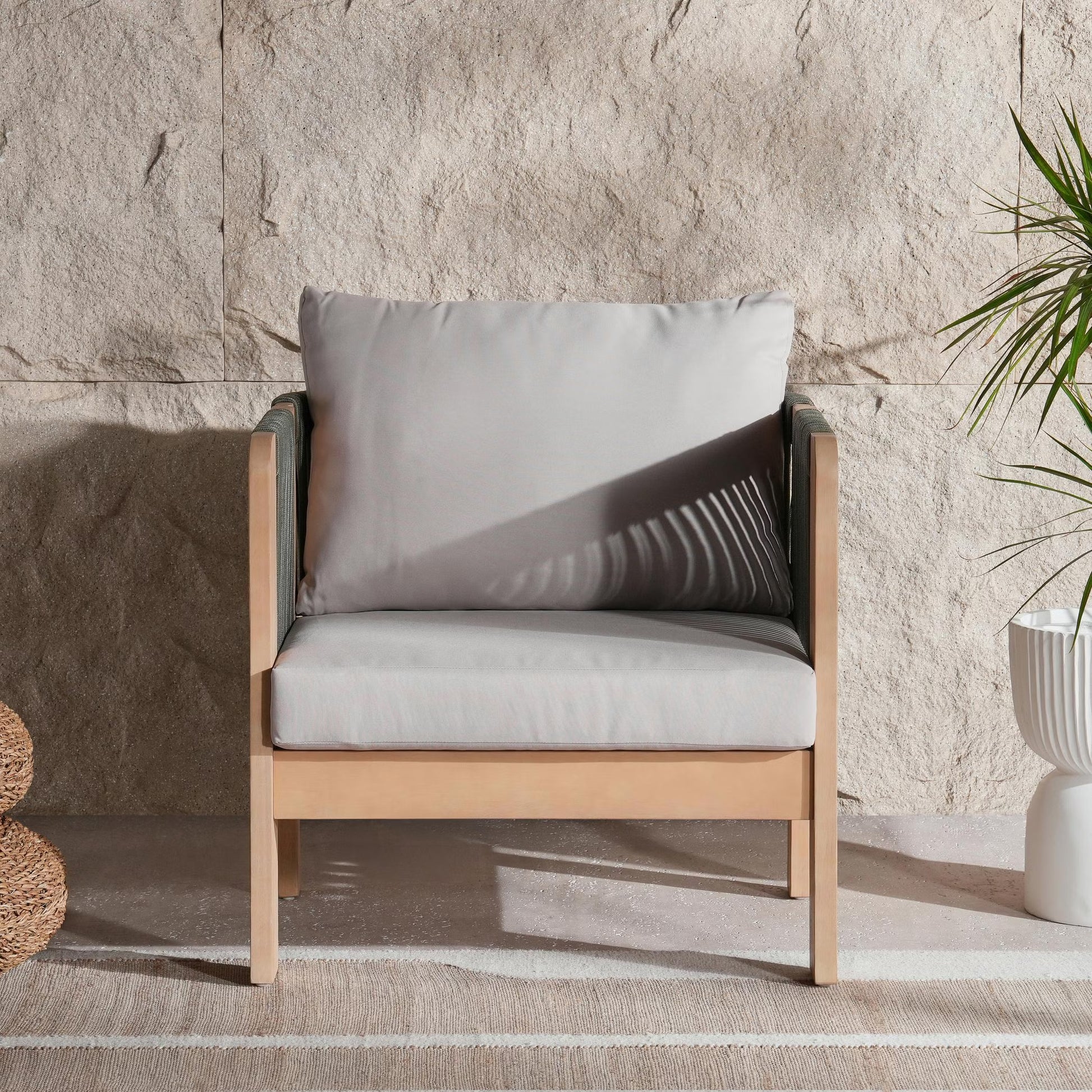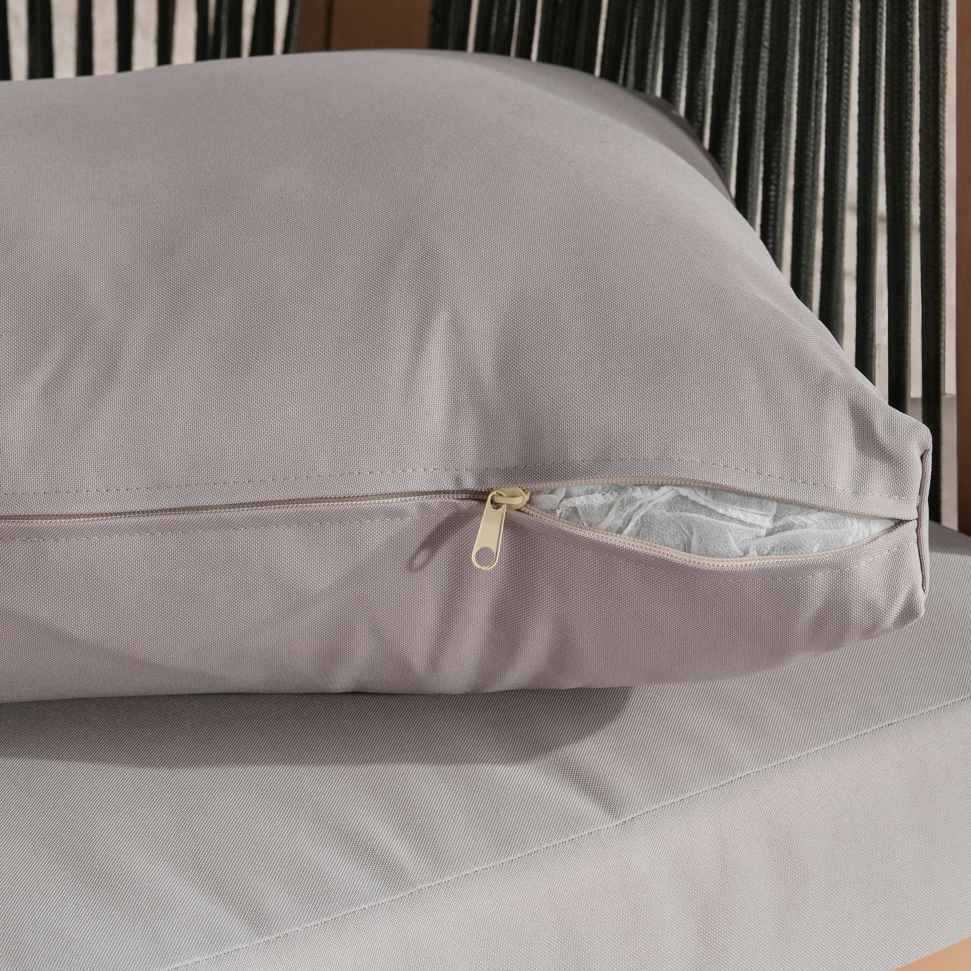 قماش مناسب للأنشطة الخارجية، تصميم أنيق، مقعد وظهر مبطنان، مقاعد مريحة، غطاء وسادة قابل للإزالة، ارتفاع الأرضية مرتفع، أذرع مسار، قوي ومتين، وسادة خارجية مريحة، توفر الوسائد مقاعد مريحة