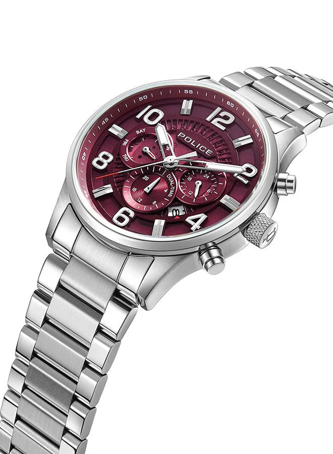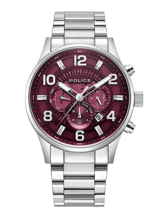 ساعة بوليس أديس للرجال بمينا عنابي وسوار فضي