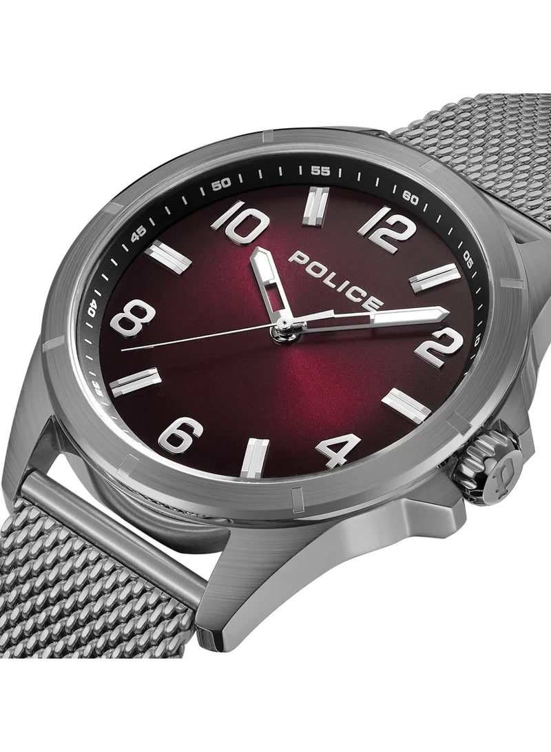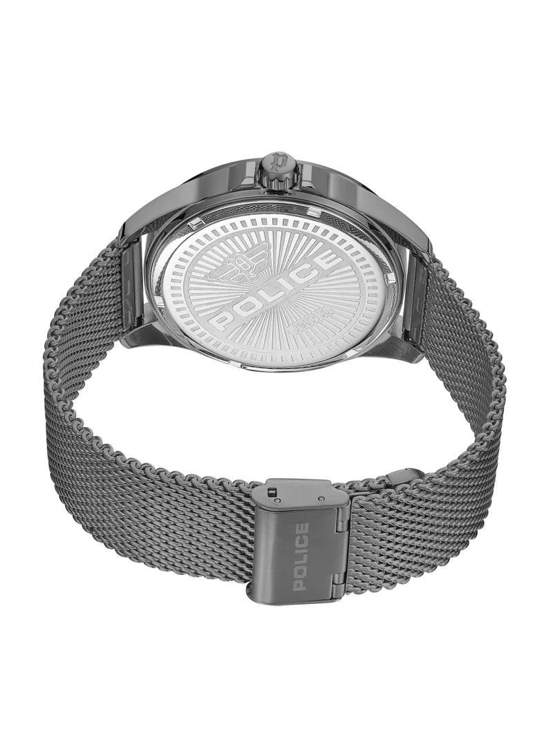 ساعة بوليس باروارا للرجال 45 مم، أنالوج، سوار من الفولاذ المقاوم للصدأ باللون الرمادي المعدني