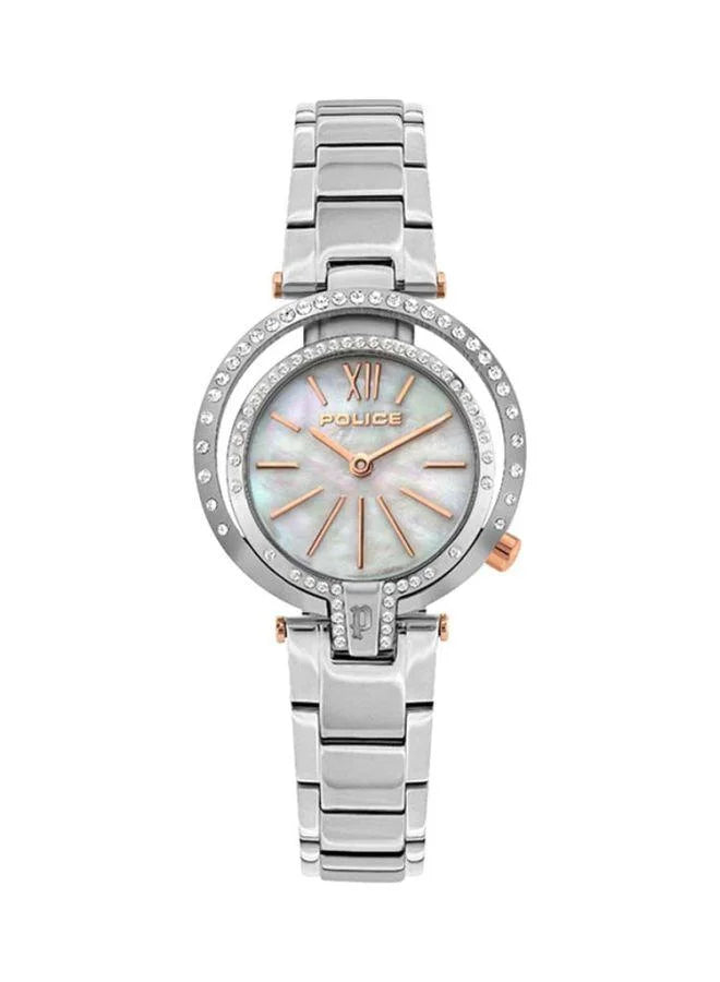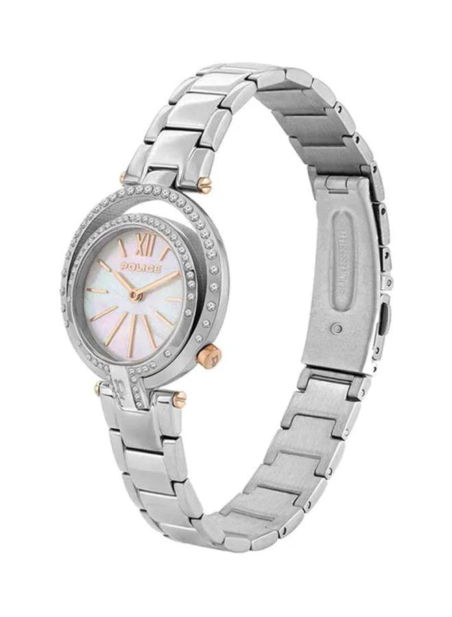 ساعة بوليس أرانوي كوارتز أنالوج نسائية بمينا أبيض وسوار فضي من الفولاذ المقاوم للصدأ