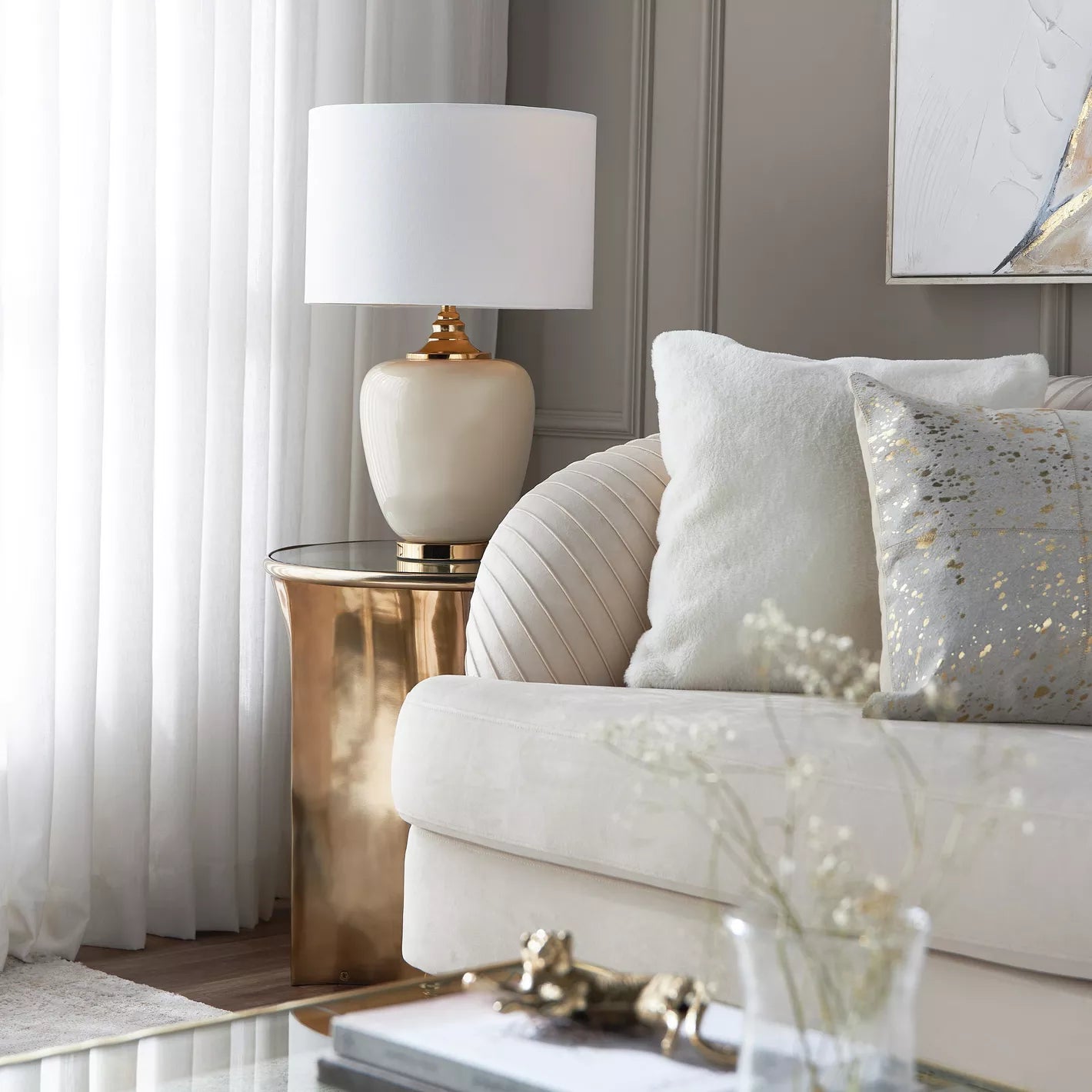 يضفي هذا المصباح الكهربائي لمسةً من السحر على غرفة معيشتك. يتميز بقاعدة أنيقة وغطاء جميل، مما يجعله إضافةً عمليةً لطاولة زاوية منزلك.