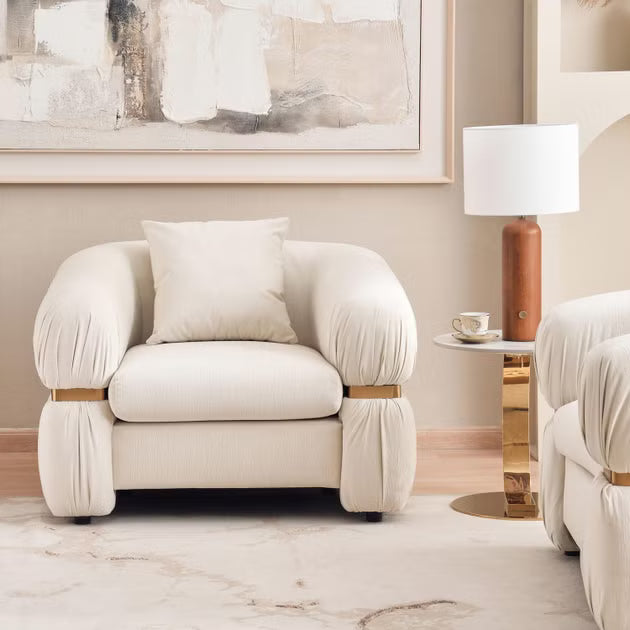 بعد ظهر هادئ وفنجان من القهوة والراحة الشاملة لأريكة Subarna ذات المقعد الواحد - هنا تبدأ مساحتك في الشعور بالاكتمال. تتميز هذه الأريكة ذات المقعد الواحد بحضورها القوي وتفاصيلها المكررة، وتوازن بين الأناقة والراحة العميقة والداعمة. تم تشطيبها بقماش بيج ناعم، وتتميز بمقاسات سخية: 110 سم في الطول و103 سم في العرض و80 سم في الارتفاع، مما يوفر مقعدًا واسعًا لشخص واحد. تدعو الوسائد العميقة مع حشوة الإسفنج لساعات طويلة من الراحة، بينما تقدم أذرع المسار المنظمة واللمسات المعدنية الدقيقة حافة حديثة مصممة خصيصًا. يضيف الإطار الخشبي القوي أسفله متانة تدوم طويلاً وتوفر الوسائد القابلة للإزالة مرونة في الصيانة والتصميم. بوزن 43 كجم، فهي تؤسس الغرفة بثقة، وهي مثالية لتثبيت زوايا القراءة أو مناطق الاسترخاء أو الملاذات الهادئة. تم دمج كل ميزة - من ملمسها الفخم إلى خطوطها النظيفة - بعناية لتعزيز كل من الشكل والوظيفة. أريكة Subarna ليست مجرد مقعد؛ إنه استثمار في الراحة والحضور ونوع من التصميم الذي يعزز بسهولة مزاج ومعنى المساحة الخاصة بك.