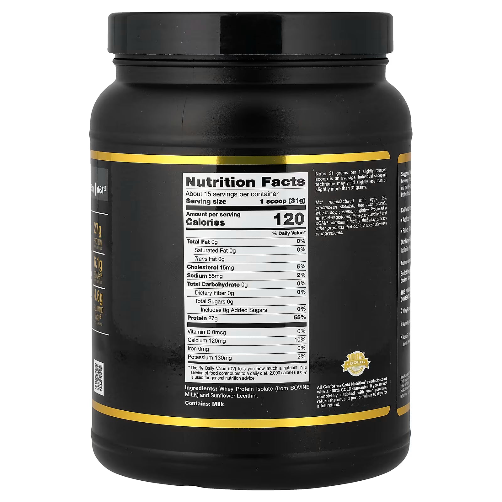 California Gold Nutrition® Sport Whey Protein Isolate features 27 grams of protein and 6.1 grams of Branched Chain Amino Acids (BCAAs) and 4.6 g of Glutamic Acid per serving. It contains low lactose and is manufactured by a multi-stage cold micro-filtration isolation process using state-of-the-art membrane technology.